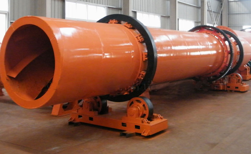 該機主要由回轉體、揚料板、傳動裝置、支撐裝置及密封圈等部件組成。我廠烘干機采用新型揚料板裝置,具有導向、均流、揚料等多項功能,能使物料在烘干機徑向截面全面均布,料幕成為薄、均、全的狀態,完全接觸熱氣流,達到充分利用熱能的目的。