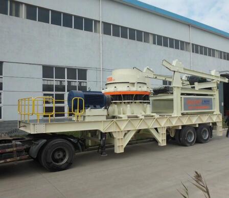物料經給料機均勻輸送到圓錐破碎機內,圓錐破碎機作初步破碎后,通過圓振動篩構成閉路系統,實現物料的循環破碎,成品物料由輸送機輸出,進行連續破碎作業。輪胎圓錐破+振動篩移動破碎站可以根據實際生產需要去除圓振動篩,實現對物料直接進行初步破碎,與其他破碎設備配套使用操作方便、靈活。